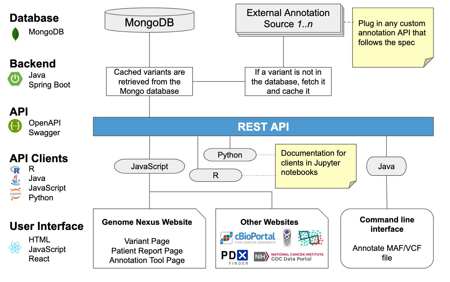 Larger annotation sources are pulled on the fly from other APIs and cached in the mongo database.